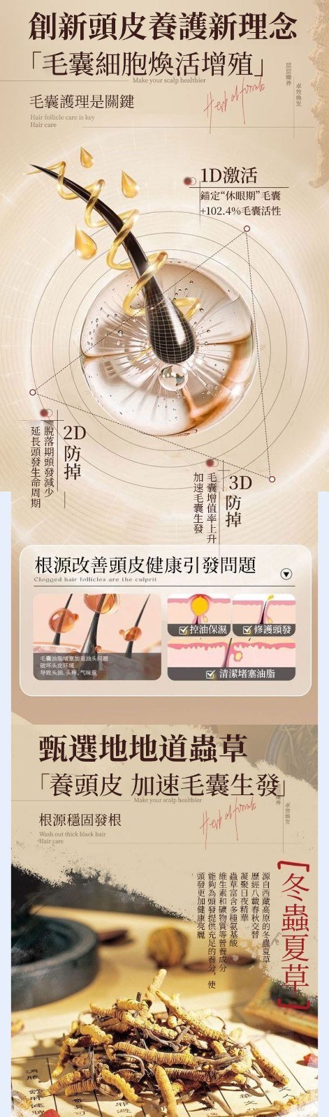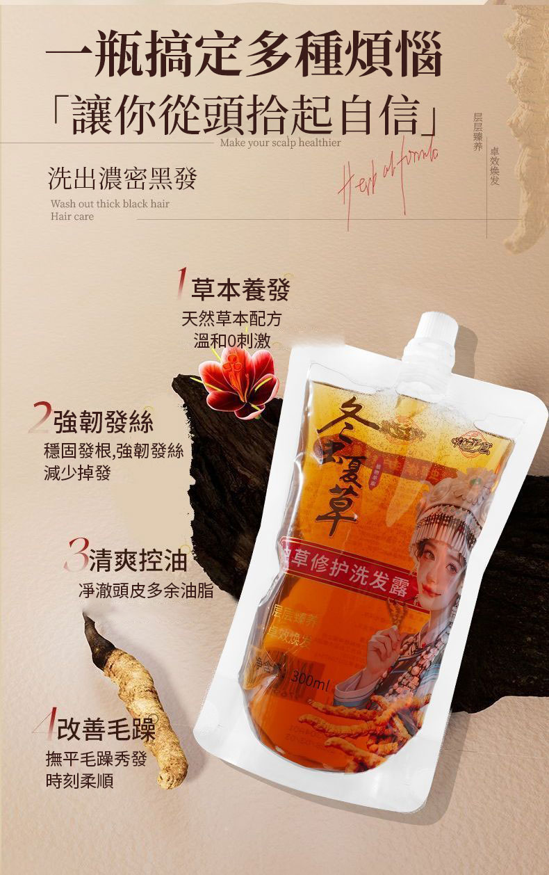 冬蟲夏草精華洗髮露,幫您解決脫髮掉髮白髮問題!